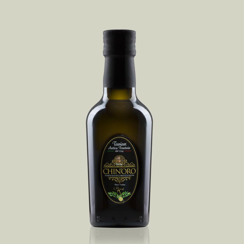 Il CHIN’ORO è frutto di una lavorazione particolare. Olive Taggiasche accuratamente selezionate e Chinotto di Savona Presidio Slow Food vengono macinati e lavorati insieme per dare vita ad un “olio aromatizzato” dalle caratteristiche molto particolari.