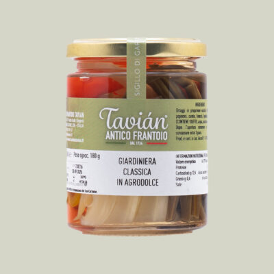 Mix di verdure croccanti cotte e conservate in aceto e zucchero. È indicata come antipasto o come contorno a carni grigliate o bollite. Ortaggi in proporzione variabile: 60% (cavolfiore, peperoni, carote, finocchi, fagiolini), aceto di vino (contiene solfiti), acqua, zucchero, sale marino.