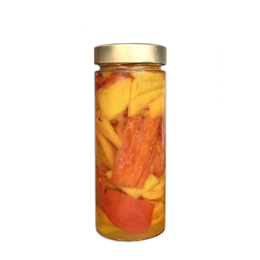 Ingredients: peppers 60%, water, sugar, salt, wine vinegar (CONTAINS SULPHITES). Antioxidant: ascorbic acid. Net weight 600g – Drained weight 360g Sweet and sour peppers are a versatile and tasty side dish: their balance between sweetness and acidity makes them perfect to accompany many dishes and ingredients, both meat and vegetarian.