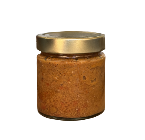 Ingredienti: peperoni 60%, olio di girasole, sale, aceto di vino (CONTIENE SOLFITI), succo di limone, chioggia, anacardi, paprika. Peso netto 200g Il pesto di peperoni è un condimento versatile, dolce e aromatico, che si abbina bene sia a piatti salati che a preparazioni vegetariane o di pesce.