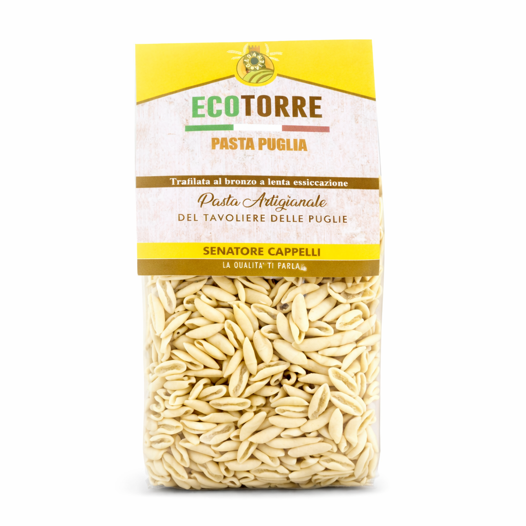 La nostra pasta è altamente artigianale perchè realizzata esclusivamente con il grano delle nostre terre del Tavoliere delle Puglie “SENATORE CAPPELLI”. Prodotta artigianalmente trafilata al bronzo a lunga essiccazione per garantire una qualità superiore rispetto alla media. Quantità minima ordinabile 1 cartone da 12 o 20 pezzi.